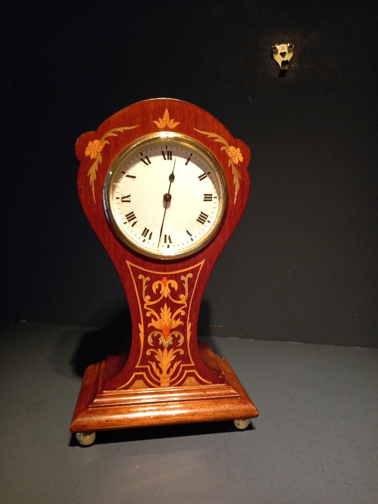 Elegant Antique Fruit Wood Inlaid Mantel Clock
