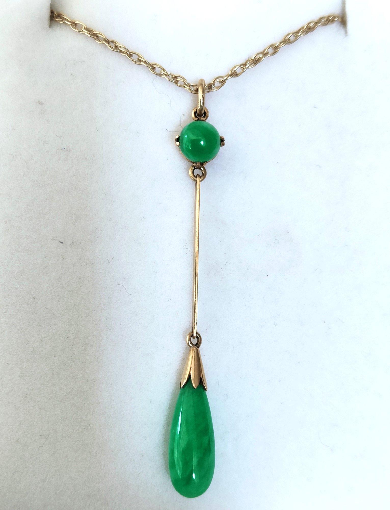 Elegant Art Deco 18ct Apple Jade Pendant Necklace
