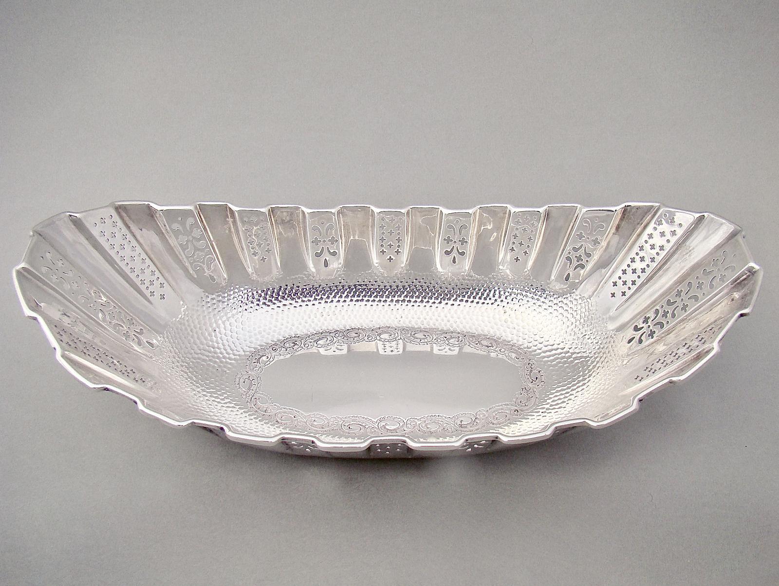 Elegant Arts & Craft Spot-hammered Silver Bread Basket by James Dixon & Sons, Sheffield 1902