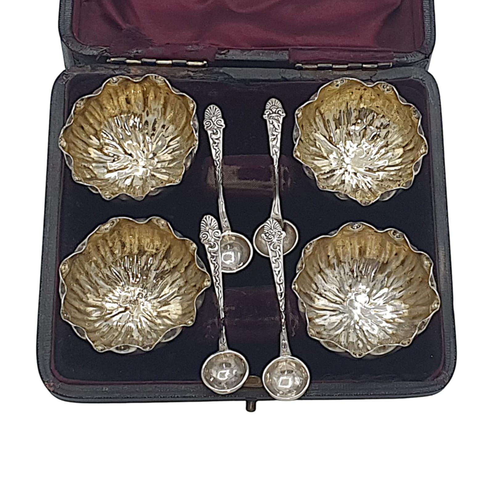 Elegant Early 20th Century Sterling Silver Set of Salts & Spoons