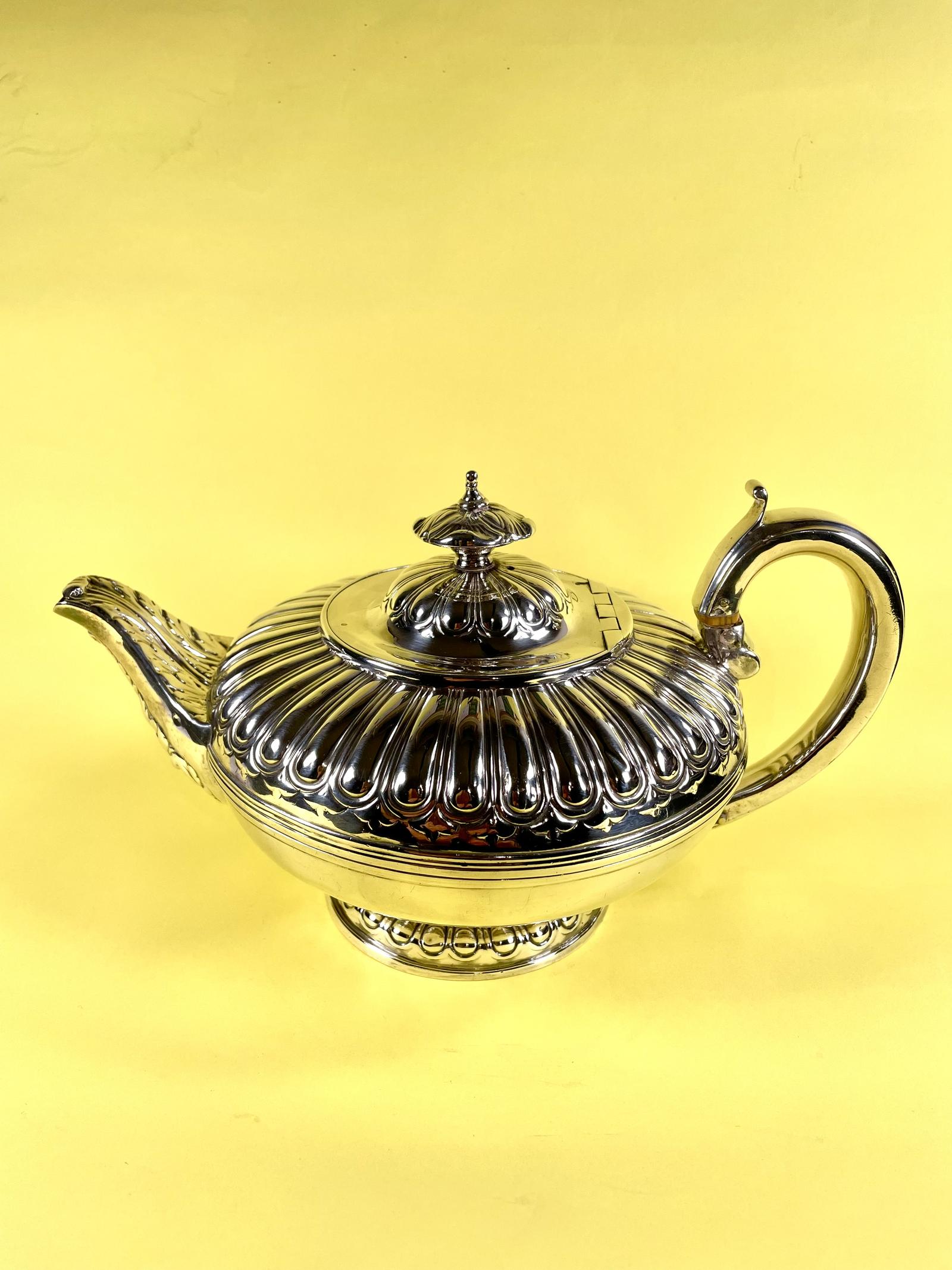 Elegant George IV Silver Demi Fluted Teapot 1824