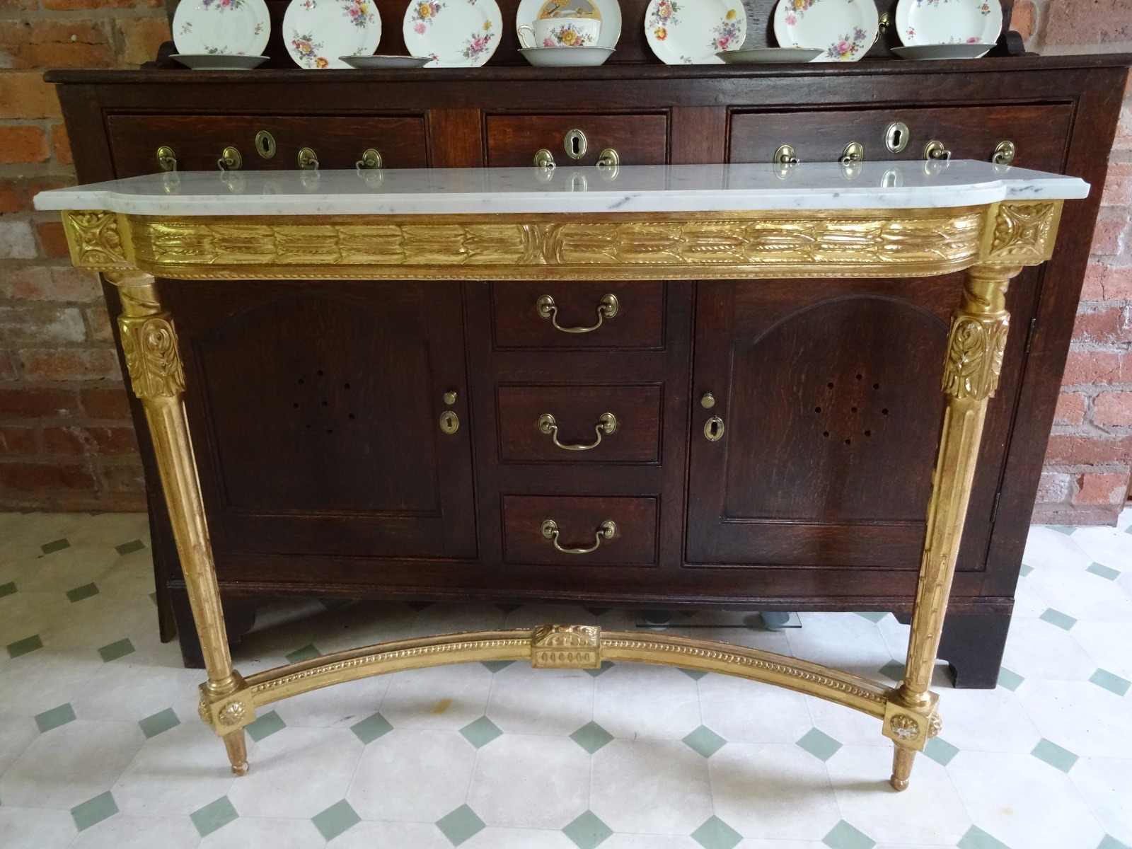 Elegant Georgian Revival Italian Giltwood & Marble Console Hall Side Table