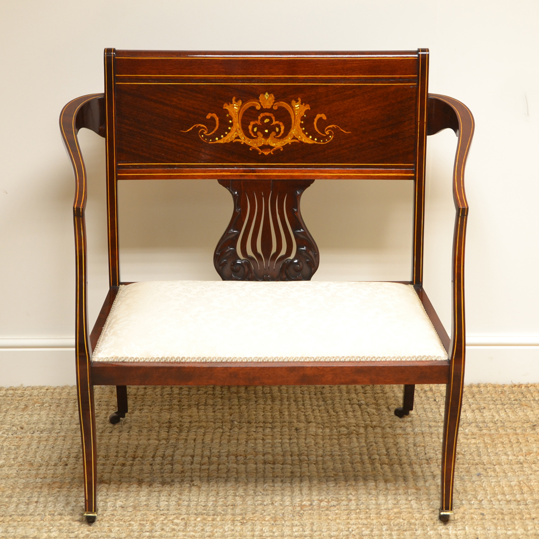 Elegant Inlaid Art Nouveau Victorian Small Antique Settee