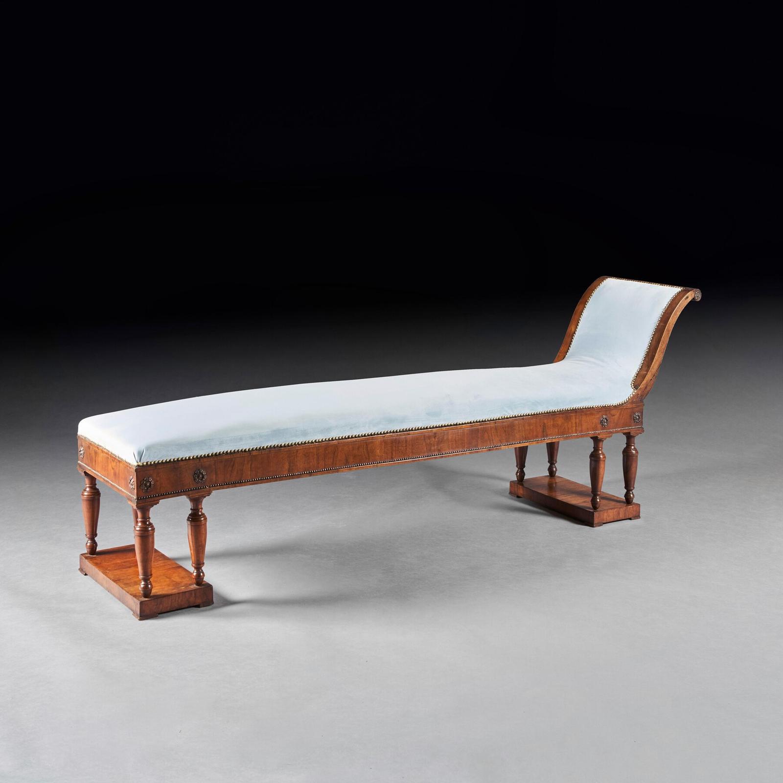 Elegant Italian Neoclassical Empire Walnut Upholstered Scroll End Bench Daybed (1 of 8)