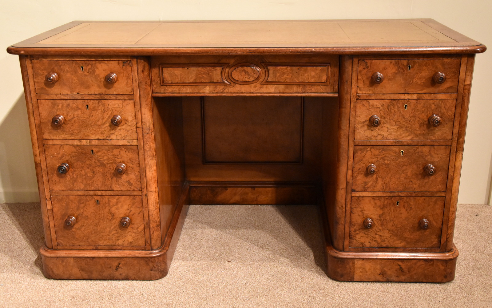 Elegant Mid 19th Century Walnut Veneered Pedestal Desk