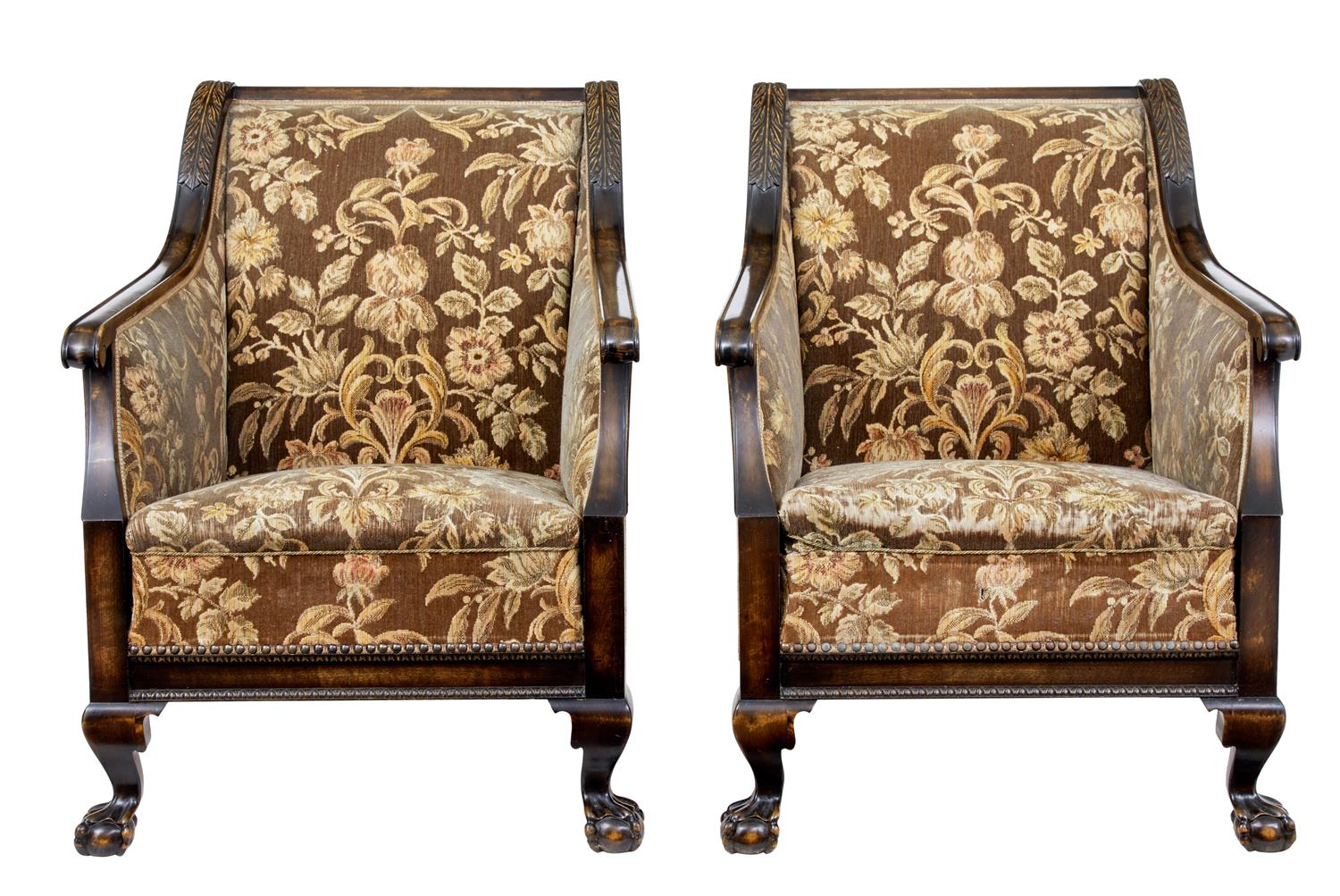 Elegant Pair of Art Deco Carved Birch Armchairs (1 of 6)