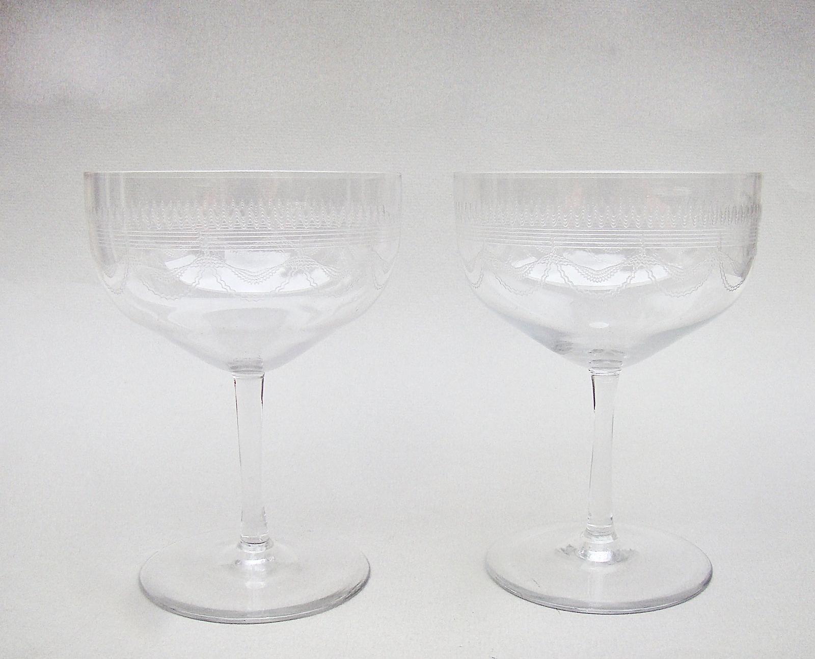 Elegant Pair of Art Deco Engraved Champagne Coupes c.1930