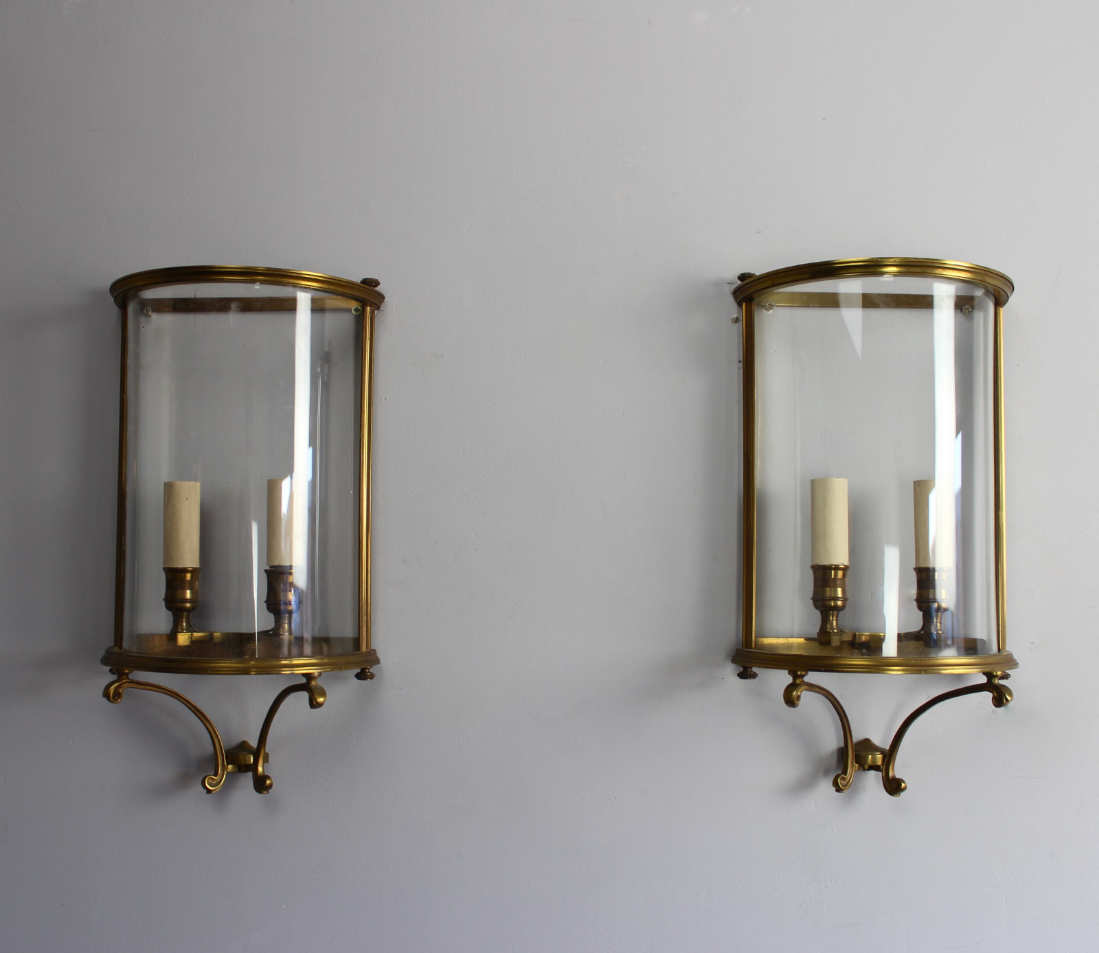 Elegant Pair of Brass Curved Glass Wall Lanterns c.1950
