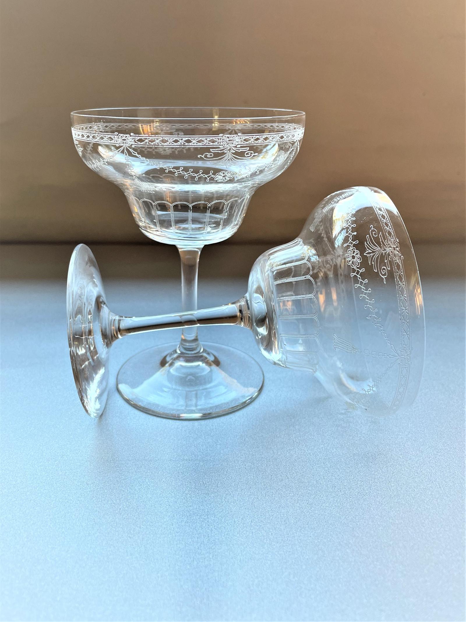 Elegant Pair of Edwardian Etched Champagne Bowls