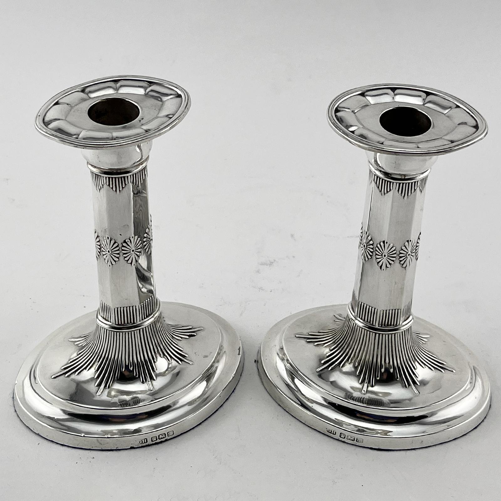 Elegant Pair of Edwardian Georgian Style Sterling Silver Candlesticks