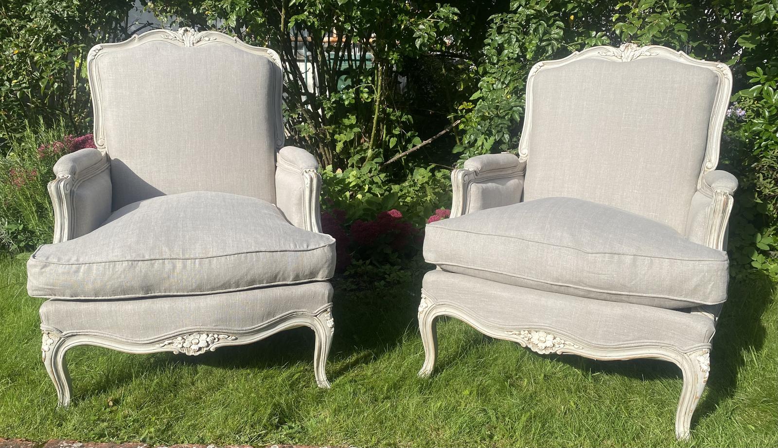 Elegant Pair of French  Bergere Armchairs in Grey Linen (1 of 6)