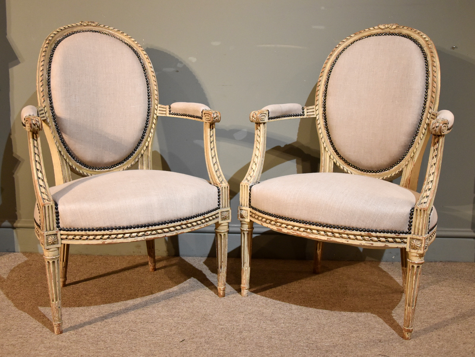 Elegant Pair of Painted French Open Armchairs c.1885 (1 of 1)