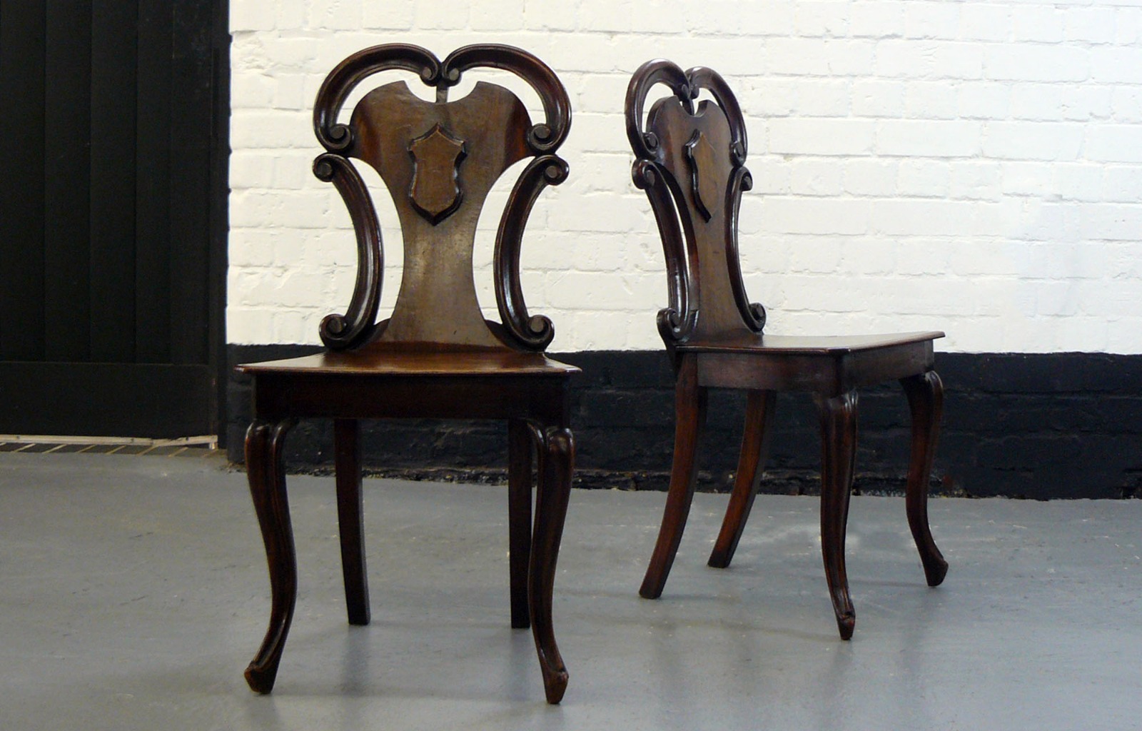 Elegant Pair of Victorian Oak Hall Chairs (1 of 1)