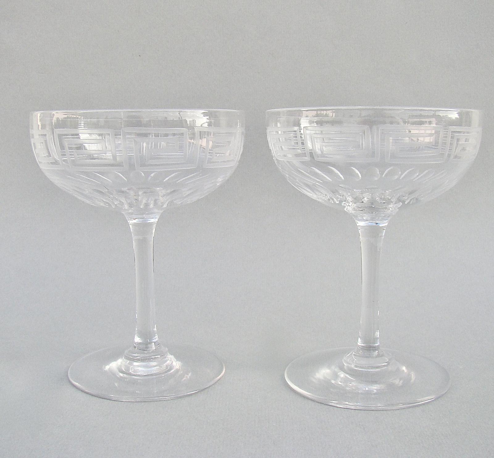 Elegant Pair of Victorian Sliced-cut Greek Key Pattern Champagne Coupes c.1890