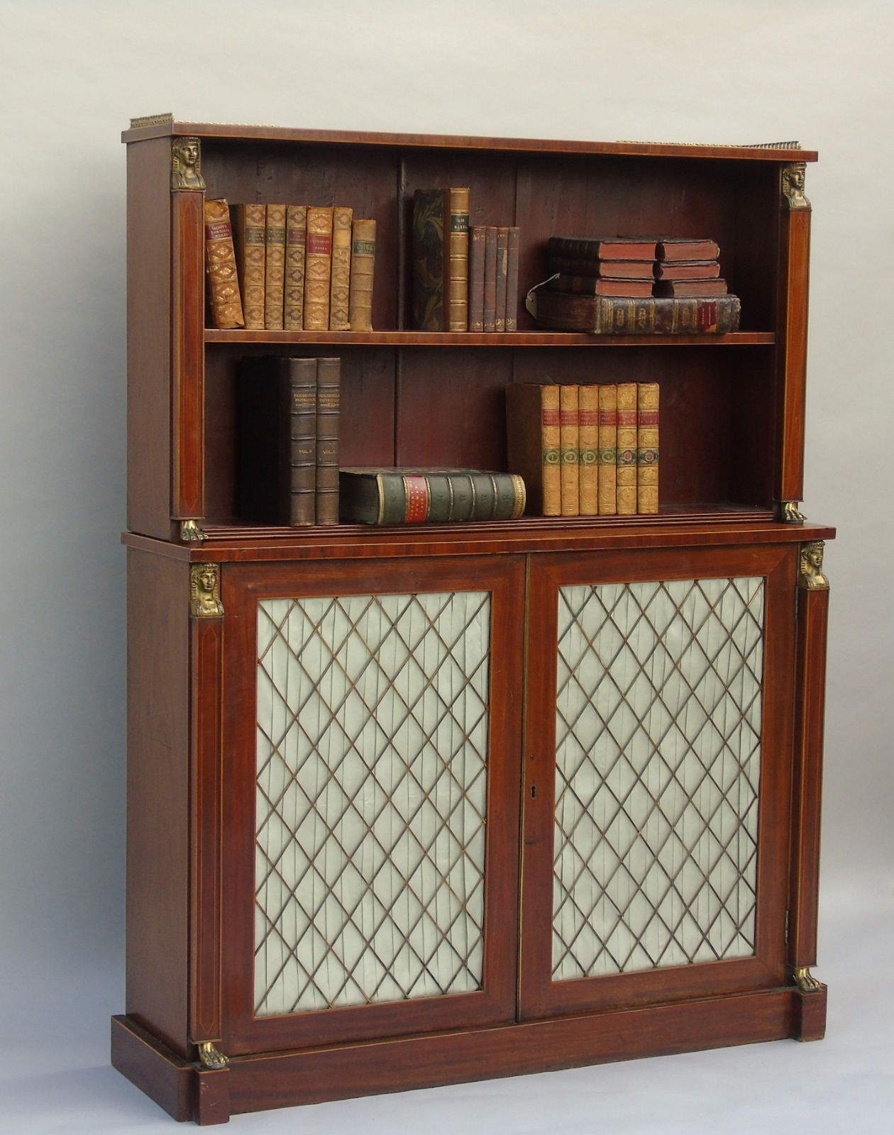 Elegant Regency Mahogany Inlaid Bookcase Cabinet