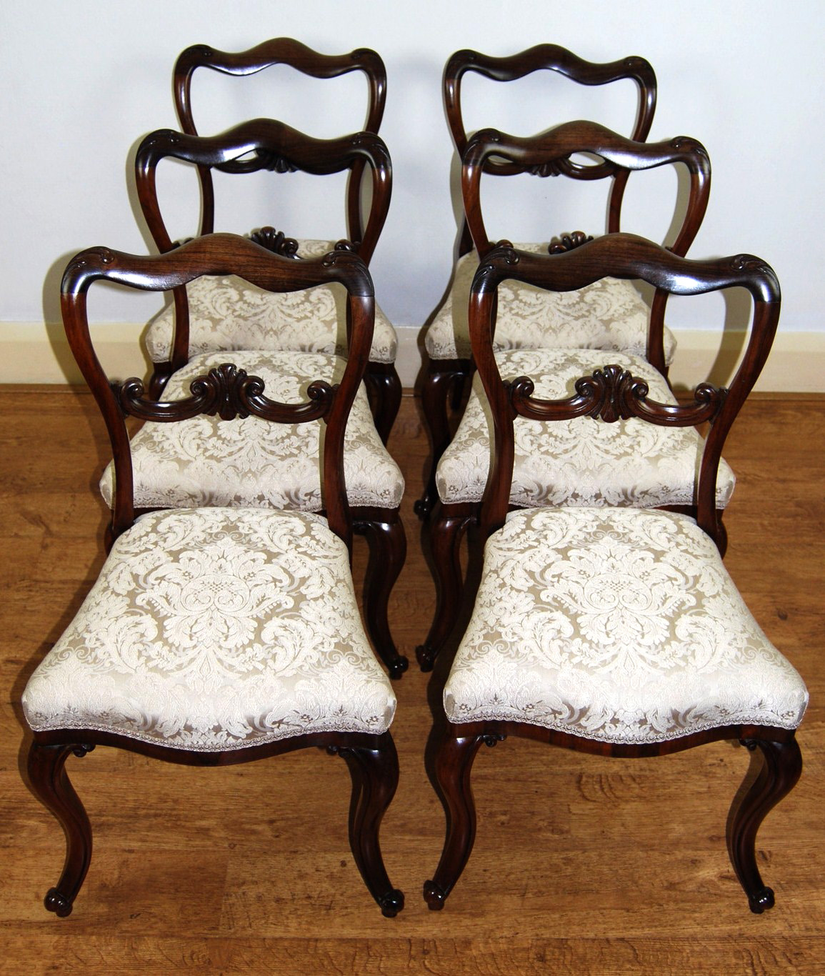 Elegant Set of Six Victorian Rosewood Dining / Salon Chairs