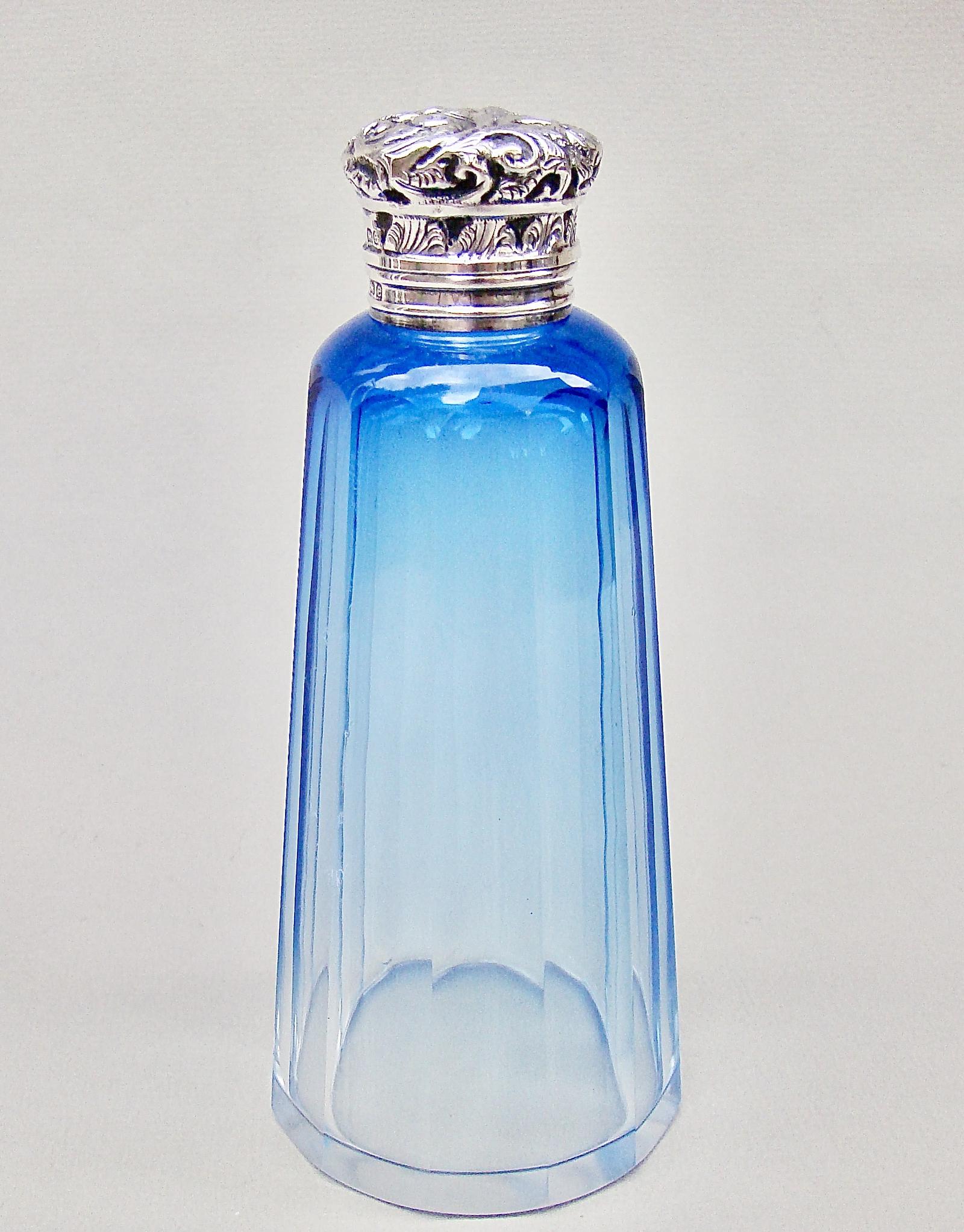 Elegant Silver Mounted Blue Glass Scent Bottle by Charles May, Birmingham 1905
