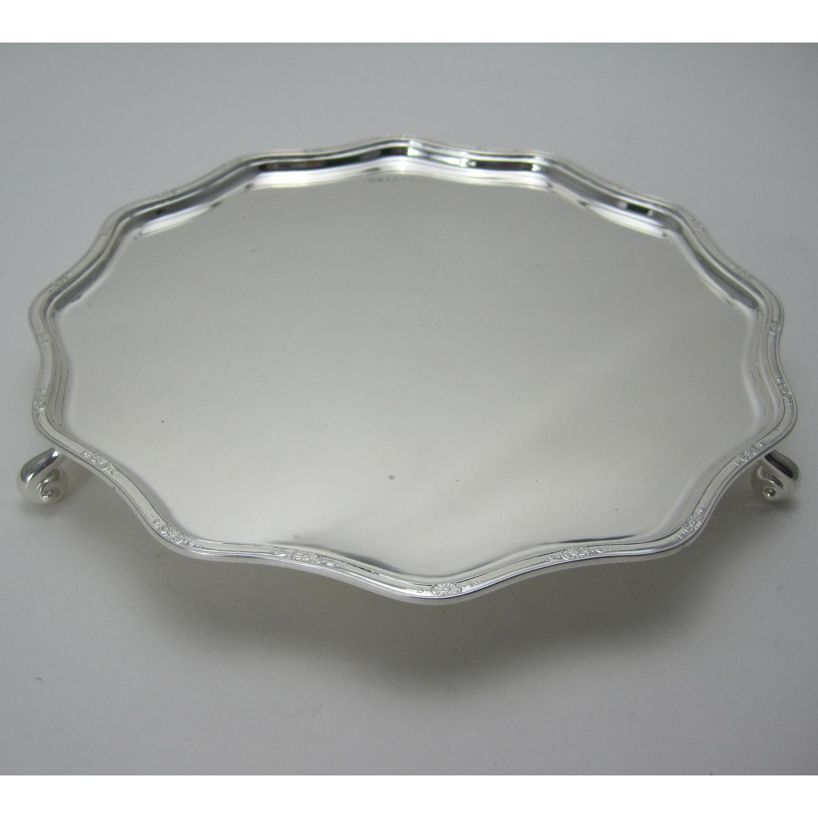 Elegant Silver Salver with a Raised Delicate Floral Border