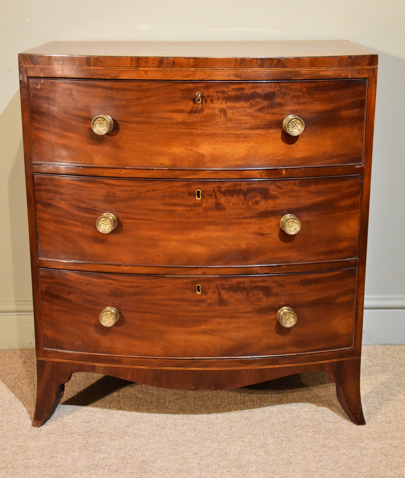 Elegant Small Regency Mahogany & Satinwood Three Drawer Chest