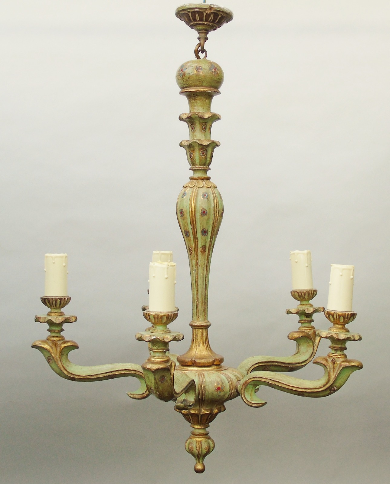 Elegant Venetian Carved & Hand Painted 5 Light Chandelier (1 of 6)