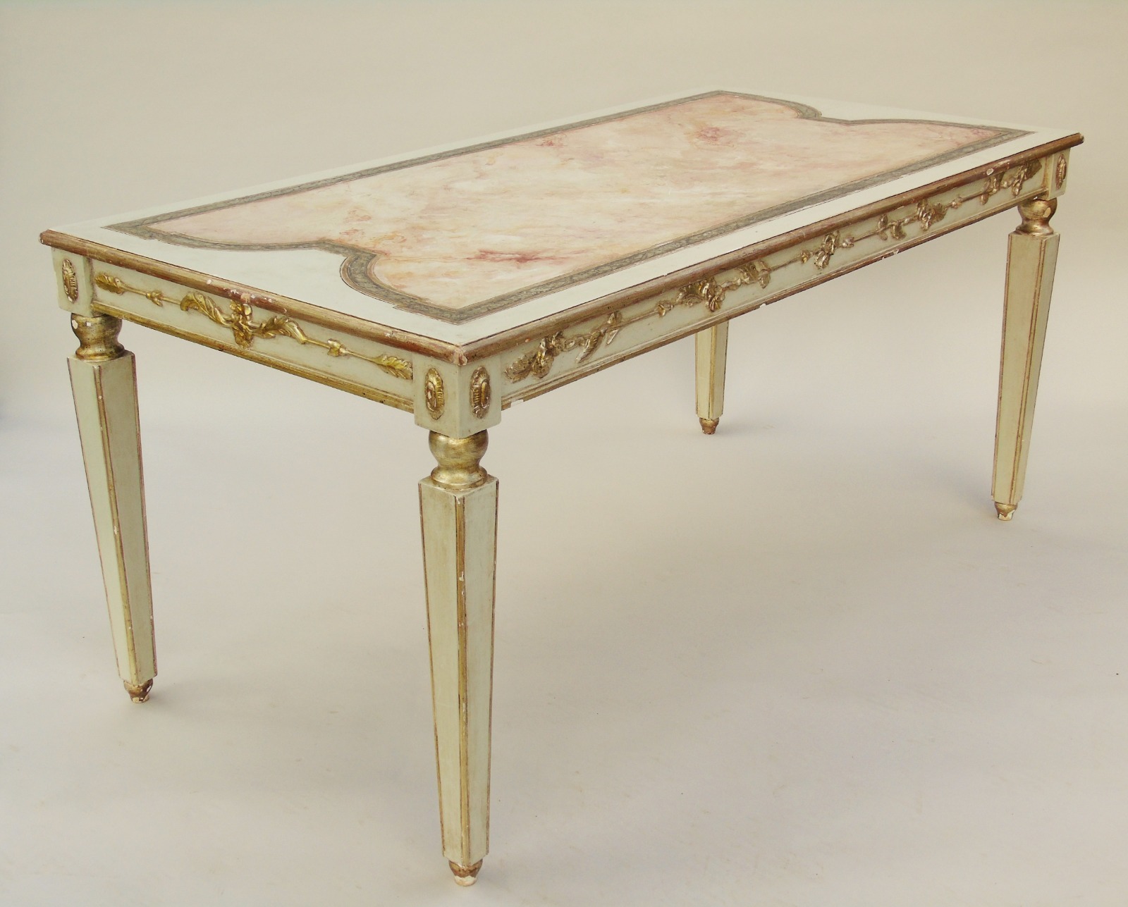 Elegant Venetian Silver Gilt & Painted Faux Marble Table