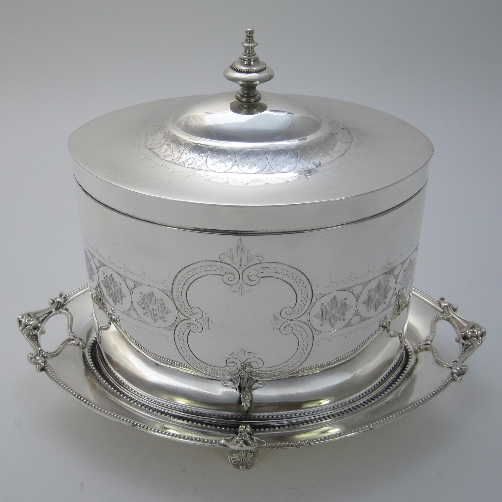 Elegant Victorian Silver Plated Oval Biscuit or Trinket Box