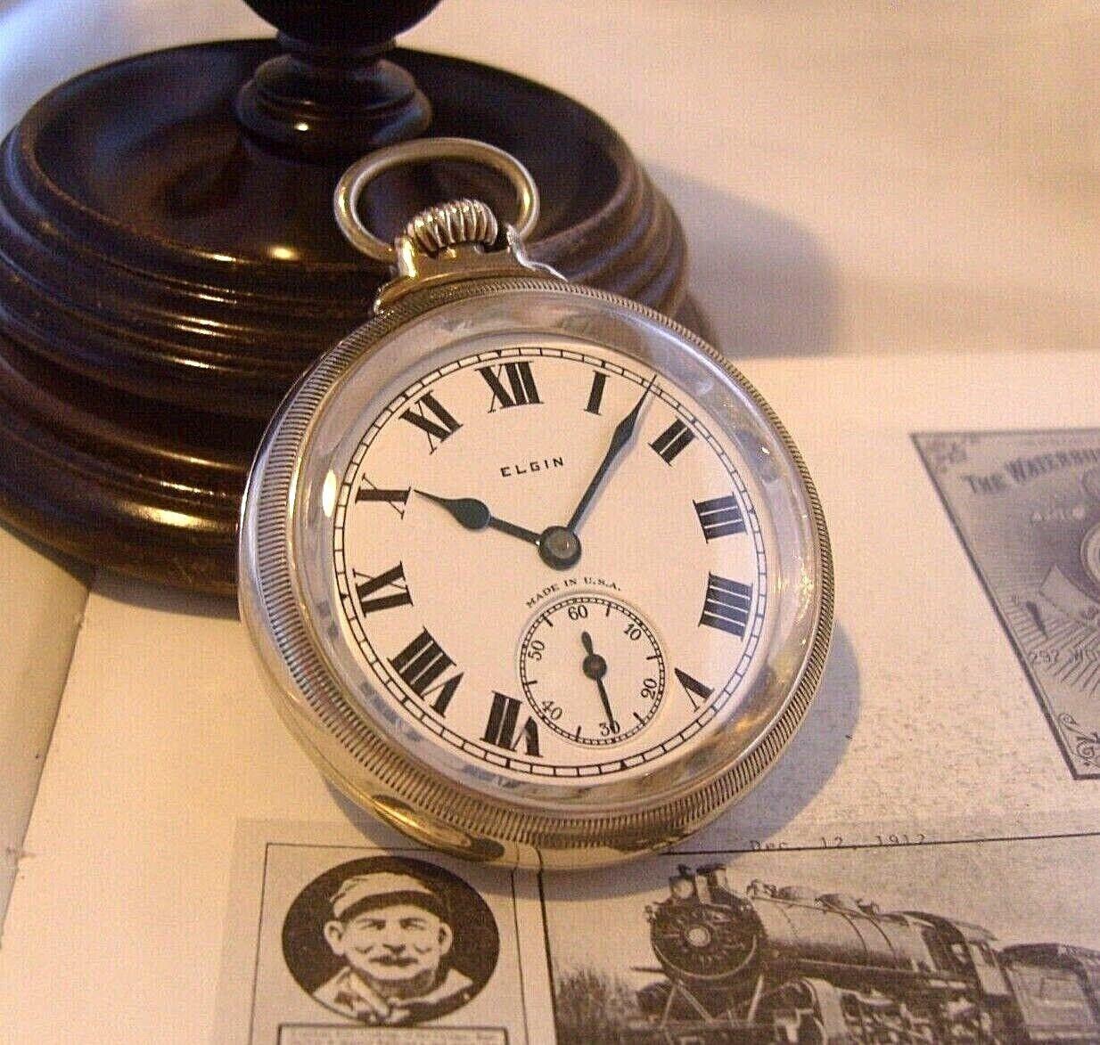 Elgin USA Pocket Watch 1933 Railway Type 7 Jewel Large Silver Nickel Case FWO