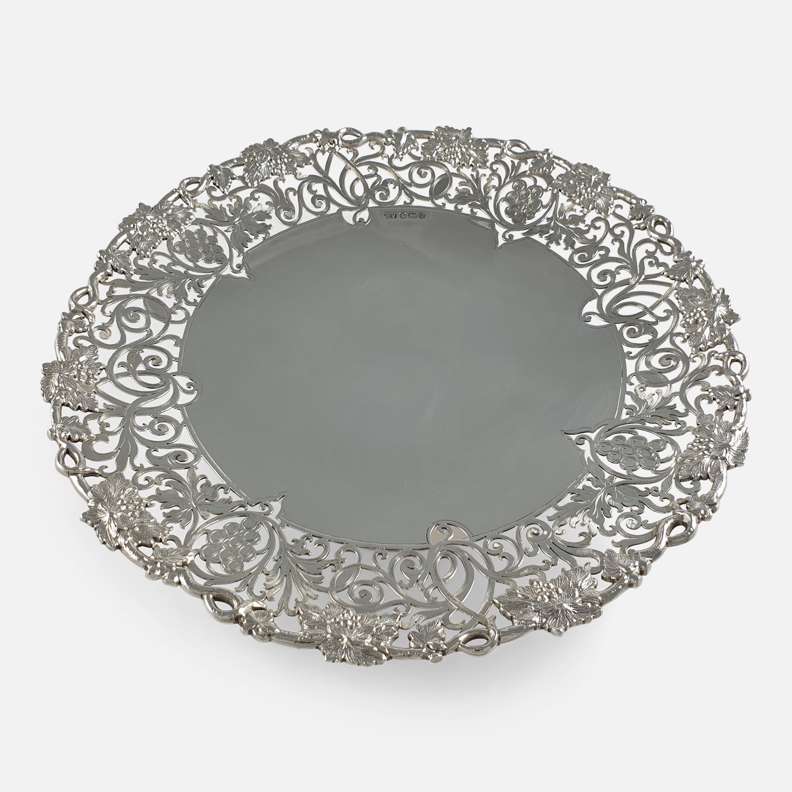 Elizabeth II Sterling Silver Hand Pierced Dessert Cake Stand Sheffield 1954