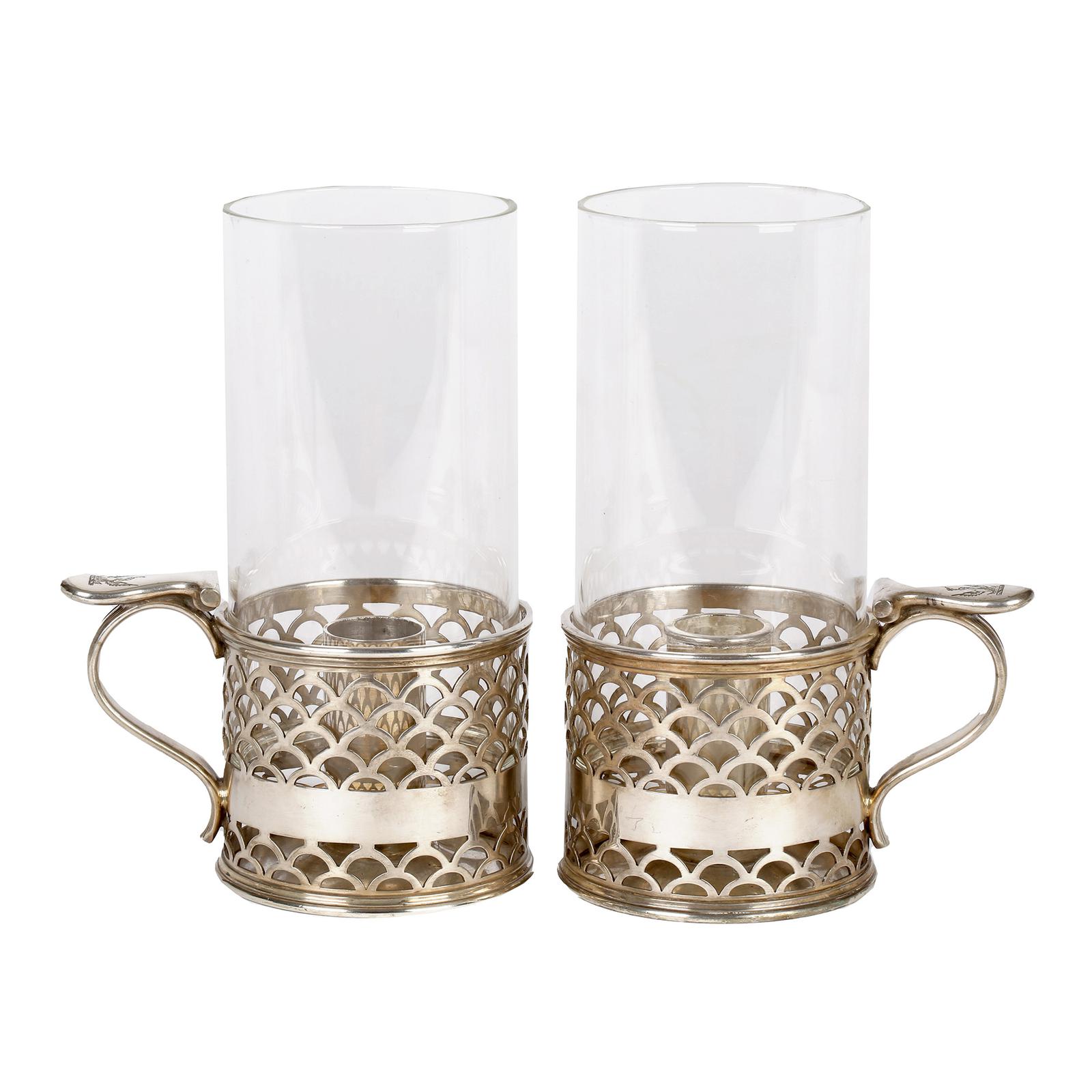 Elkington Pair of Crested Silver Plated Glass Storm Lamp Handled Lanterns 1888