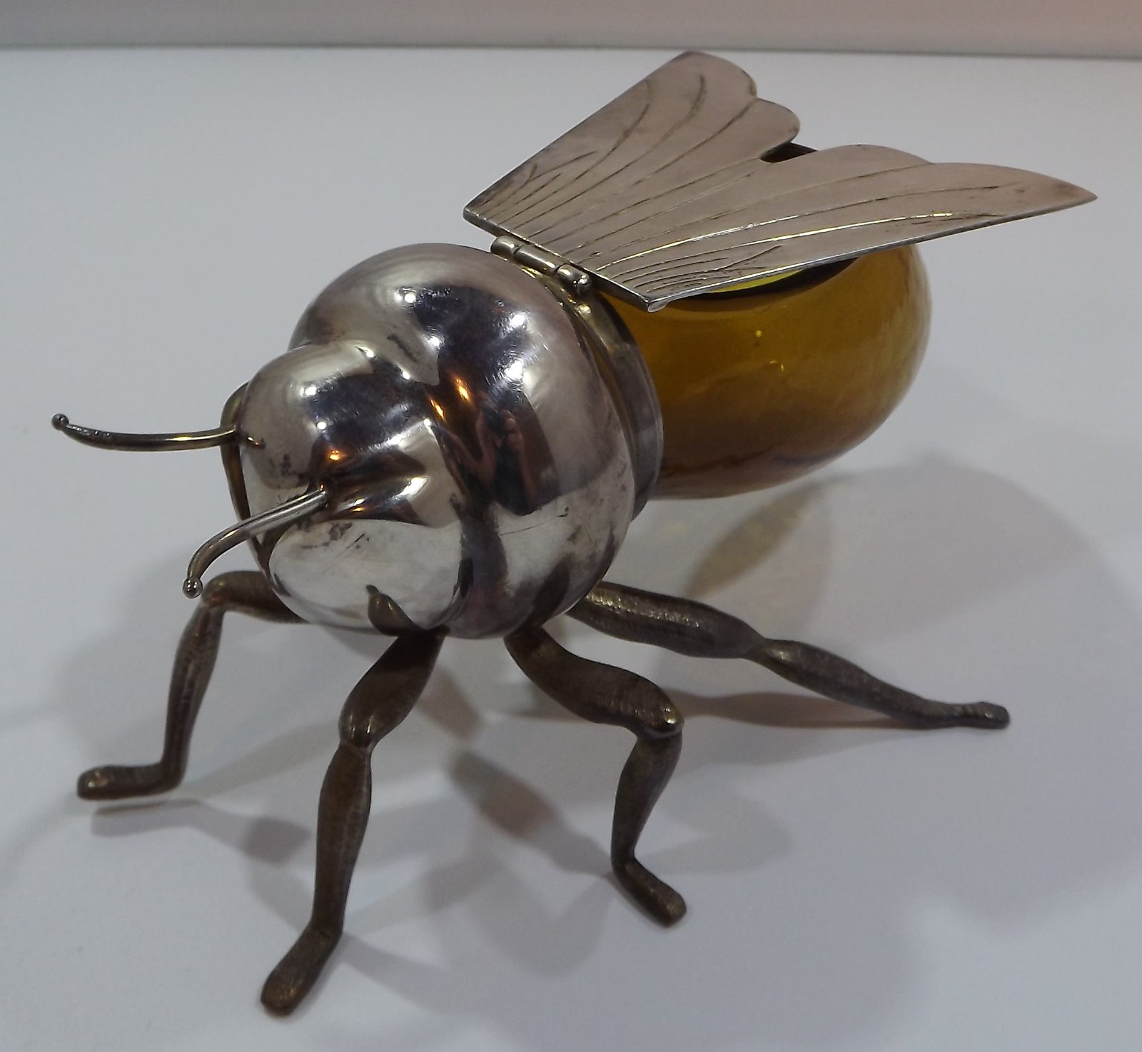 Elkington Silver-Plate & Amber Glass Honey Bee Pot