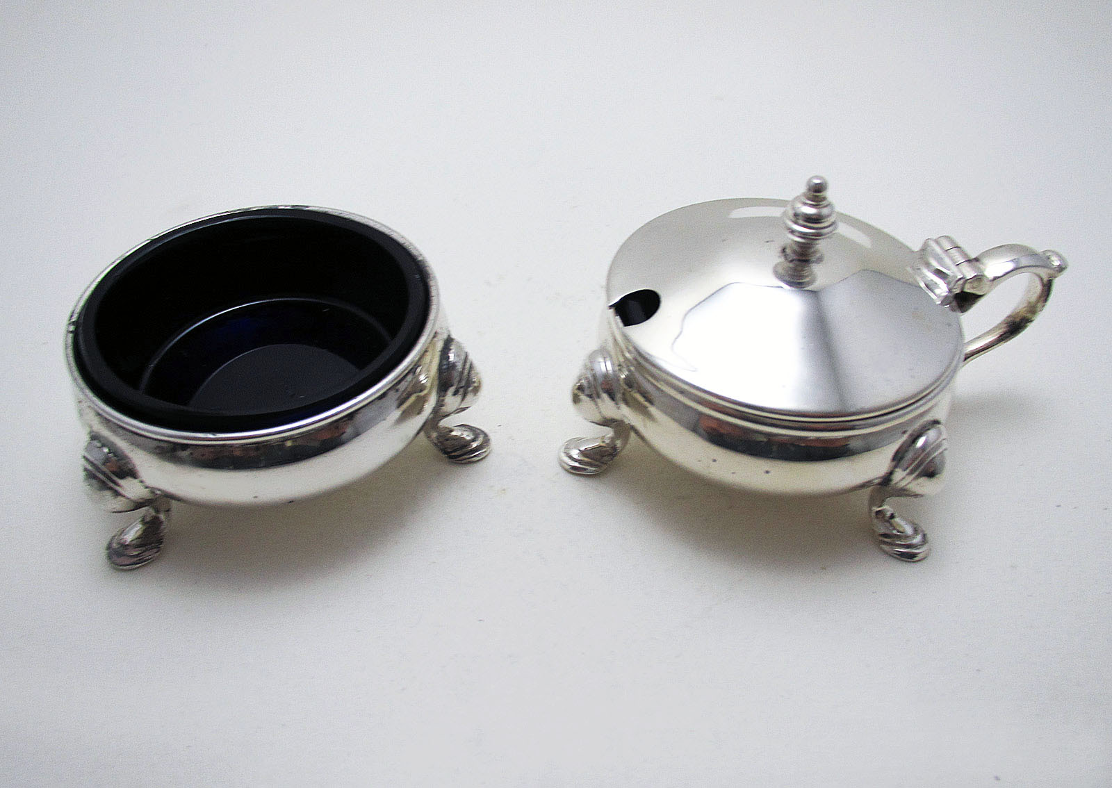 Elkington Vintage / Retro Solid Sterling Silver Salt Cellar & Mustard Pot Cruet Set. English Birmingham Hallmarked (1 of 1)