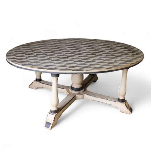 Elliptical Early 20th Century Dining Table - Hand Painted Geometric Design