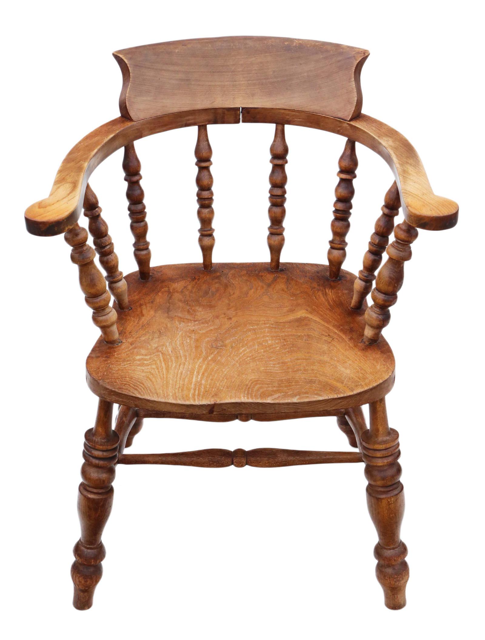 Elm and Beech Bow Armchair Elbow Desk Chair Victorian C1890 (1 of 8)