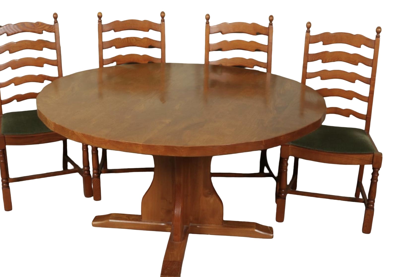 Good quality late 20th century Elm round table and four chairs top quality hand made item and in excellent condition all round.