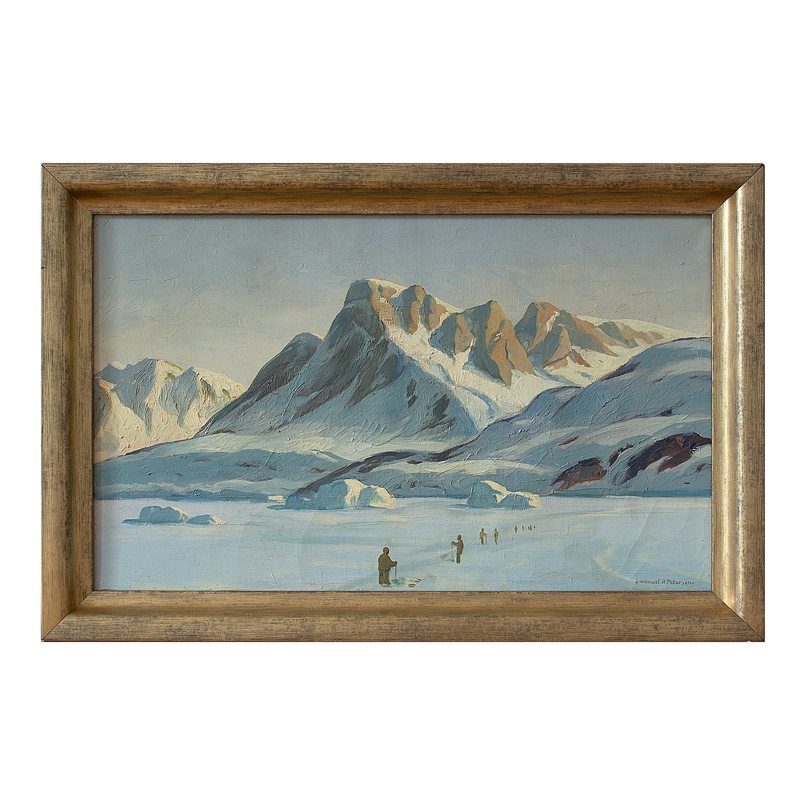 Emanuel A Petersen, Arctic Landscape With Inuit, Oil Painting