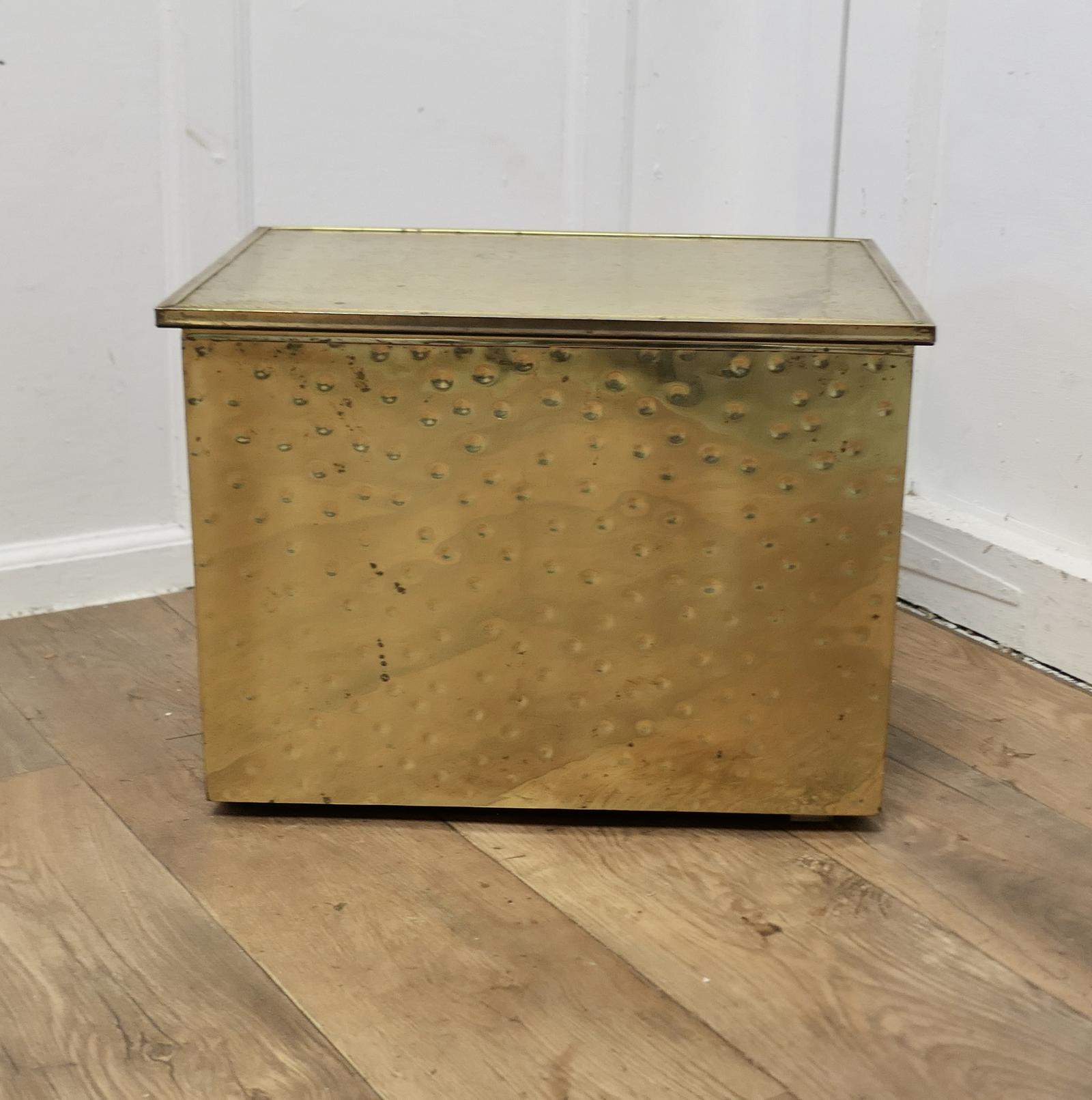 Embossed Art Deco Brass Fireside Log or Coal Box