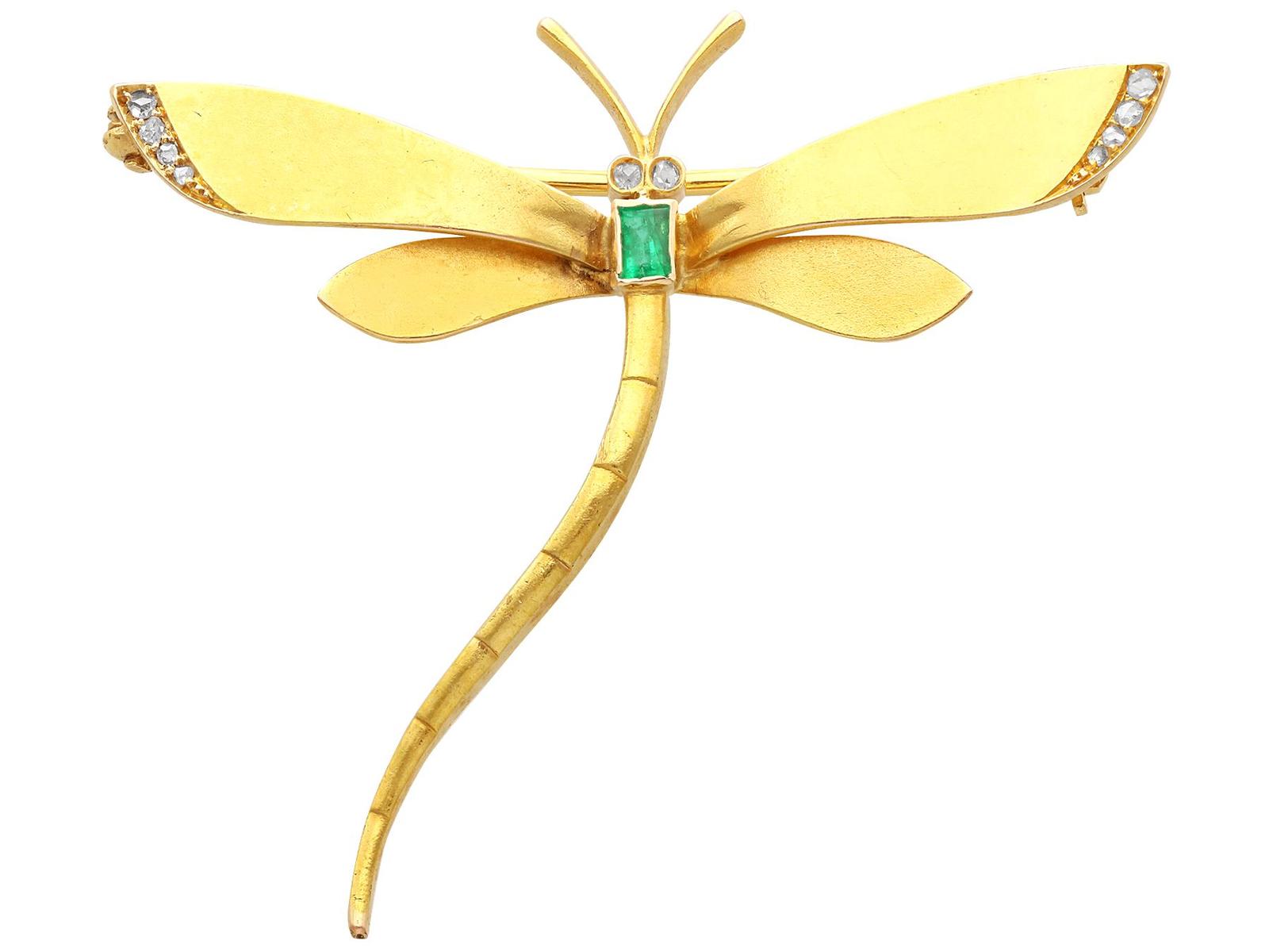 Emerald and Diamond, 14ct Yellow Gold Dragonfly Brooch (1 of 9)