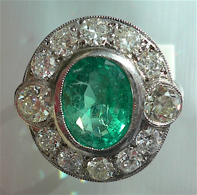 Emerald & Diamond Cluster Ring in 18ct White Gold