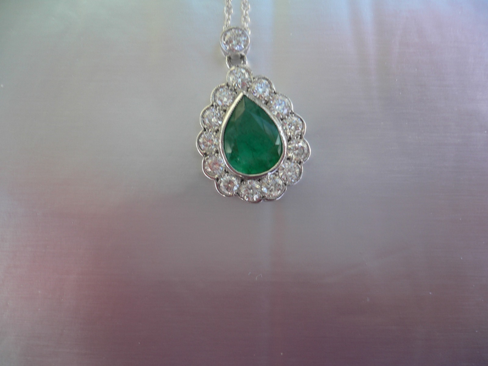 Emerald & Diamond Pendant Set in 18ct White Gold
