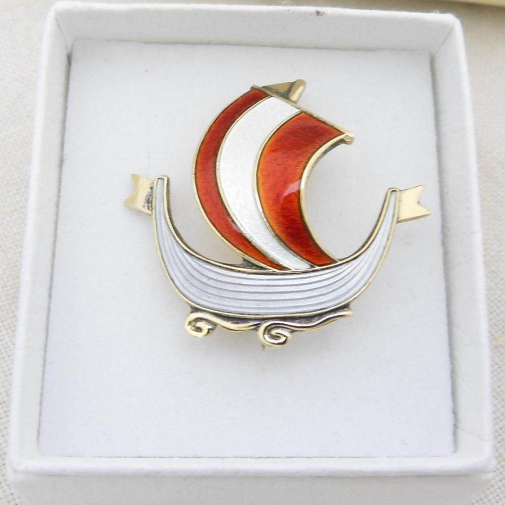 Enamel Viking Boat Brooch by Aksel Holmsen Norway