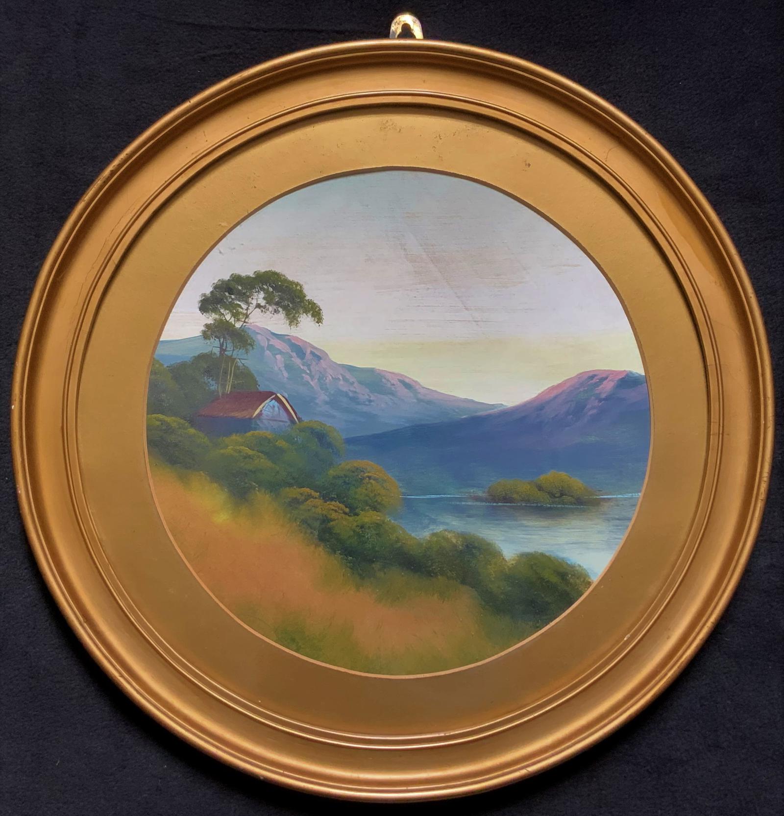 Enchanting Original Antique Circular Highland Landscape Watercolour Painting