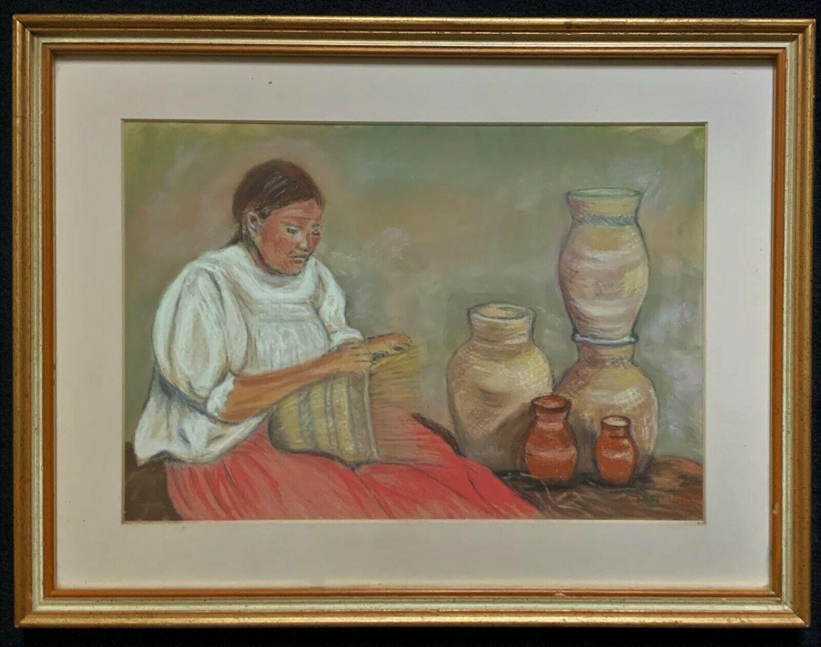 Enchanting Original Signed Pastel Painting of a Basket Maker