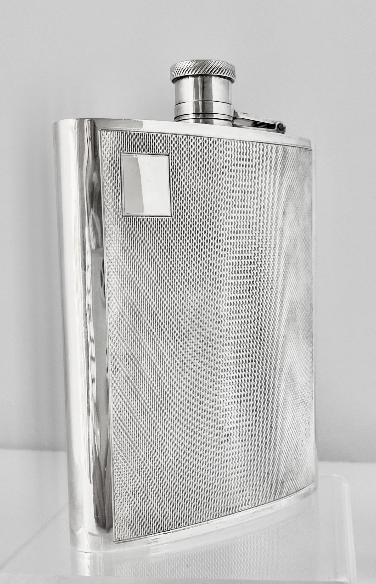 Engine Turned Silver Plated Hip Flask