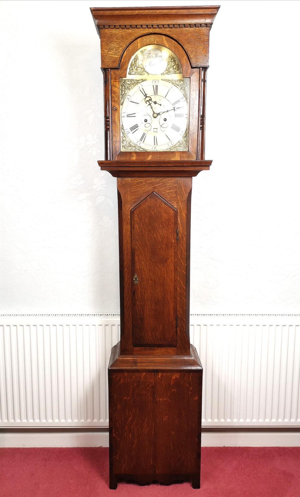 English 18th Century Georgian Oak Grandfather Longcase Clock by Thomas King of Alnwick with Brass Dial & Silvered Chapter Ring (1 of 10)