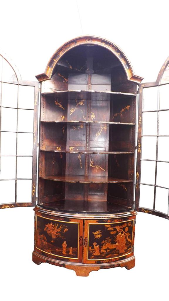 English 19th Century Chinoiserie Lacquered Bow Fronted Display Cabinet