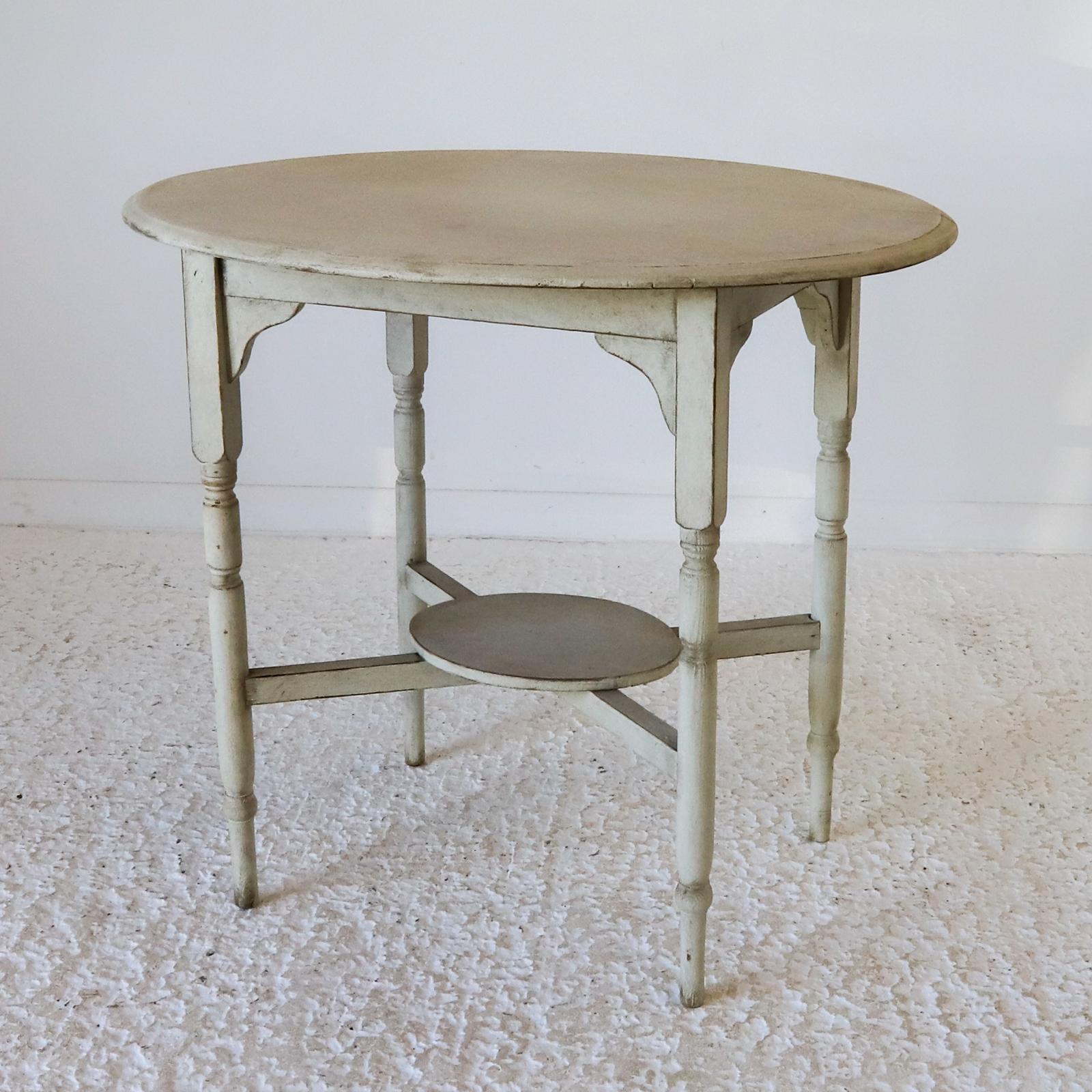 English 19th Century Circa 1860-1880 Oval Pine Two Tier Table Later Painted (1 of 17)