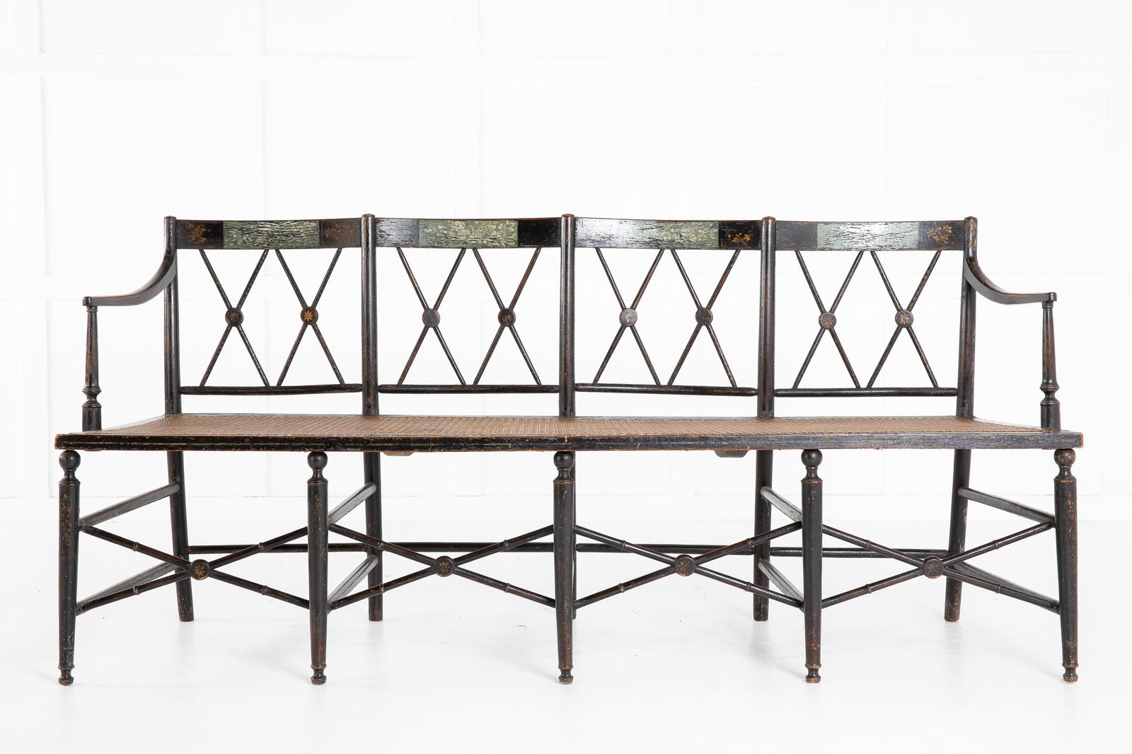 English 19th Century Regency Ebonised Cane Seat Sofa