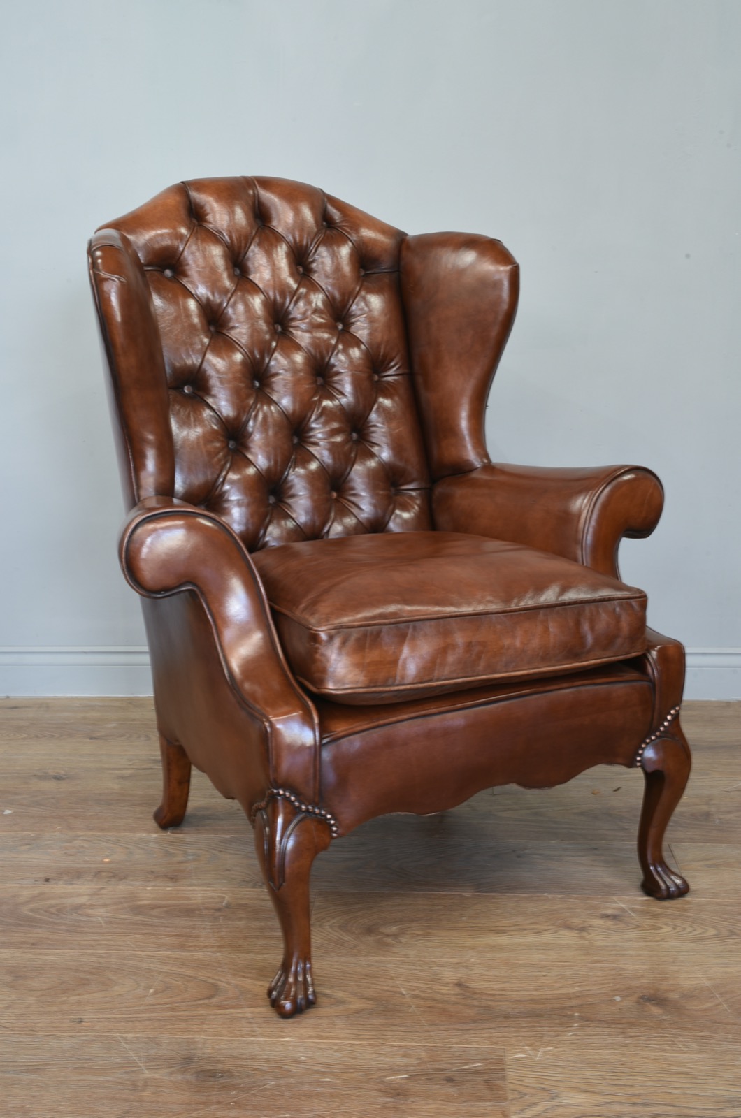 English Antique Leather & Buttoned Wing Armchair (1 of 5)