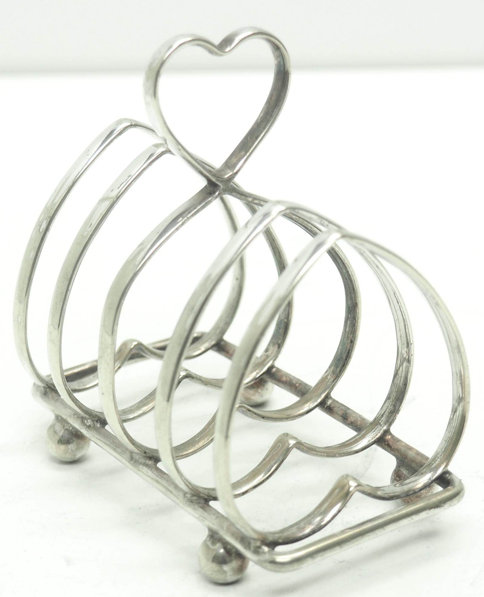English Antique Solid Silver Heart Shaped Toast Rack, Super Design Fresh & Clean c.1920 (1 of 4)