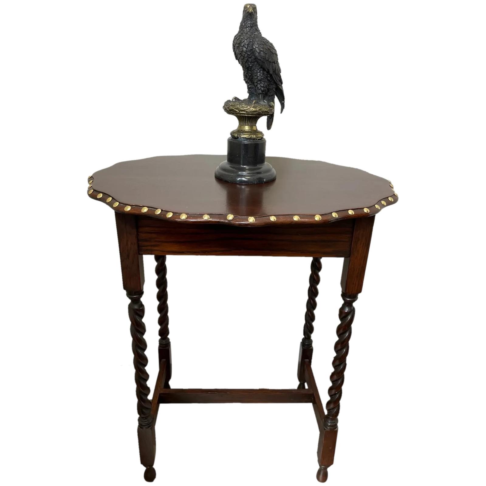 English Beautiful Art Deco Barley Twist Oak Brass Studded Oval Side Table (1 of 34)